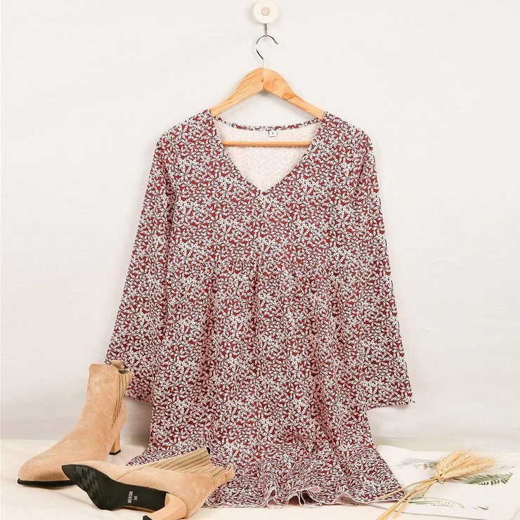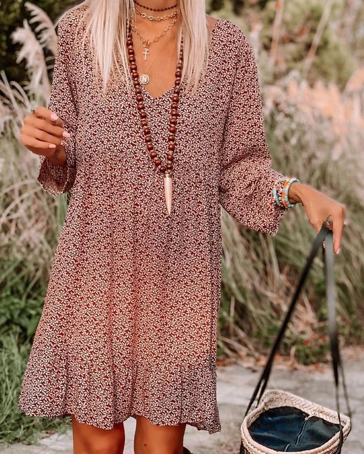 Hold tight to the memories you make in this cute, breezy playful. For summer vacation or autumn apple picking, this breathable, playful dress is a smart and simple option. Styled with a V-neckline, wide bracelet sleeves and a ruffled hem, you can slip it on and look pulled together instantly. Best all, the dress goes with everything from sky-high wedges to cowboy boots to classic sneakers. Deep V-neck; Long Sleeve; Mini Length; Print; Shift Silhouette; 40% Elastane, 60% Rayon; Hand Wash Cold.-Due to the different display and different light, the picture may not reflect the actual color of the item. Thanks for your understanding.
