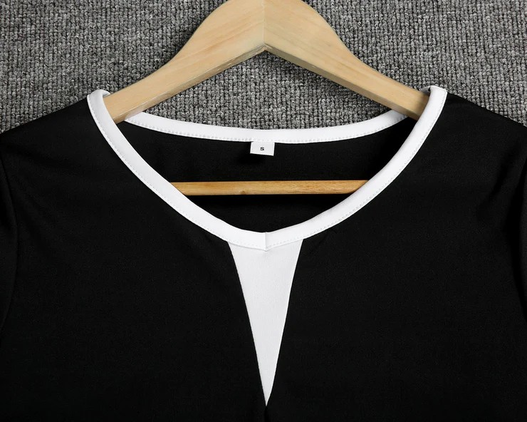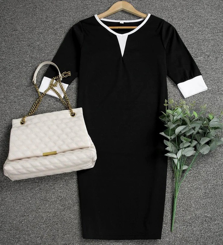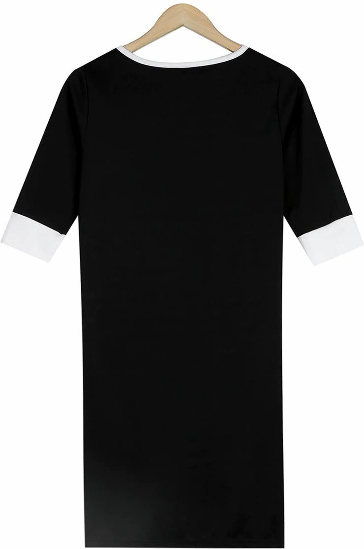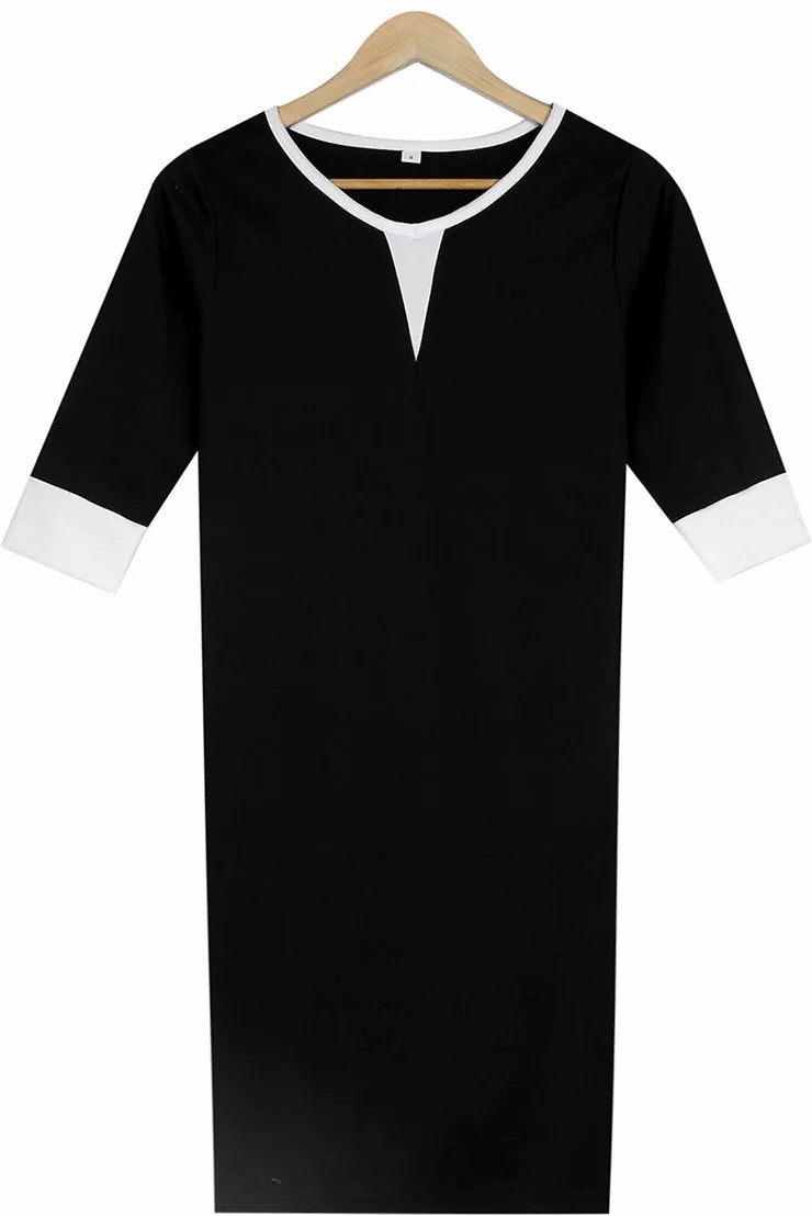 Add a day of sophistication to your work attire with this slim-fitting above-the-knee work dress. This conservative dress features ¾ length fitted sleeves with white trim and a white collar. The dress hits comfortably just above the knee. Complement this versatile LBD with pantyhose, a blazer, and a scarf, or amp up your style with heels and jewelry. Neckline: V-neck; Sleeve Length: 3/4 Sleeve; Dress Length: Mini; Pattern Type: Print; Silhouette: Bodycon; 65% Rayon, 35% Elastane; Machine Washable. -Due to the different display and different light, the picture may not reflect the actual color of the item. Thanks for your understanding.