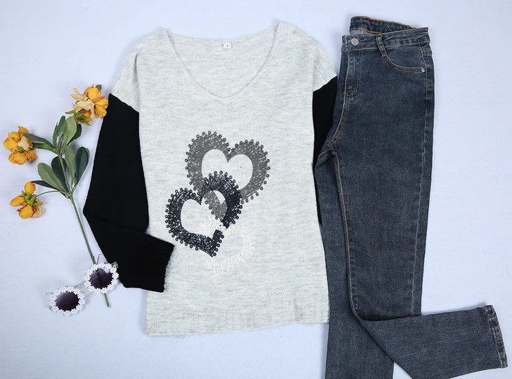 Sleeve Length: Long Sleeve; Pattern Type: Print; V-neck; Cotton/Acrylic; Machine Washable. -Due to the different display and different light, the picture may not reflect the actual color of the item. Thanks for your understanding.